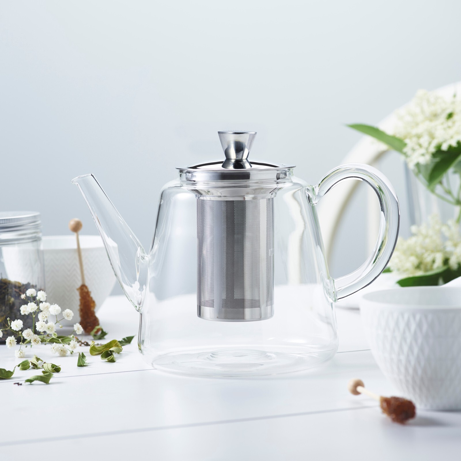 Заварочный чайник Oolong из боросиликатного стекла и фильтром с крышкой из нержавеющей стали.