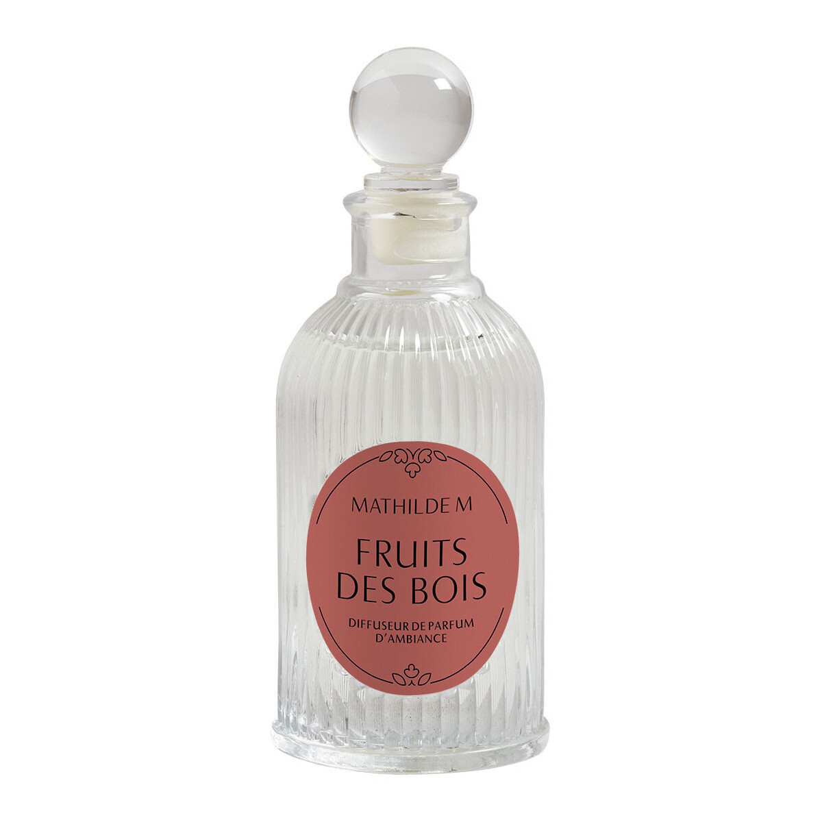 Откройте для себя Fruits des Bois — захватывающий аромат с цветочно-фруктовым профилем, раскрывающийся свежими нотами красных фруктов, обрамленными бархатистым ароматом фиалки. Базовые ноты сладкой ванили и пачули пробуждают вкусовые рецепторы и вызывают тягу к клубничному джему. Этот ароматический диффузор Les Intemporelles — настоящий предмет декора, который непрерывно благоухает в вашем доме. Изящно расположенные в стеклянном сосуде с ребристым узором, натуральные ротанговые палочки впитывают аромат благодаря капиллярному эффекту. Этот диффузор наполняет комнату среднего размера ароматом в течение нескольких недель.