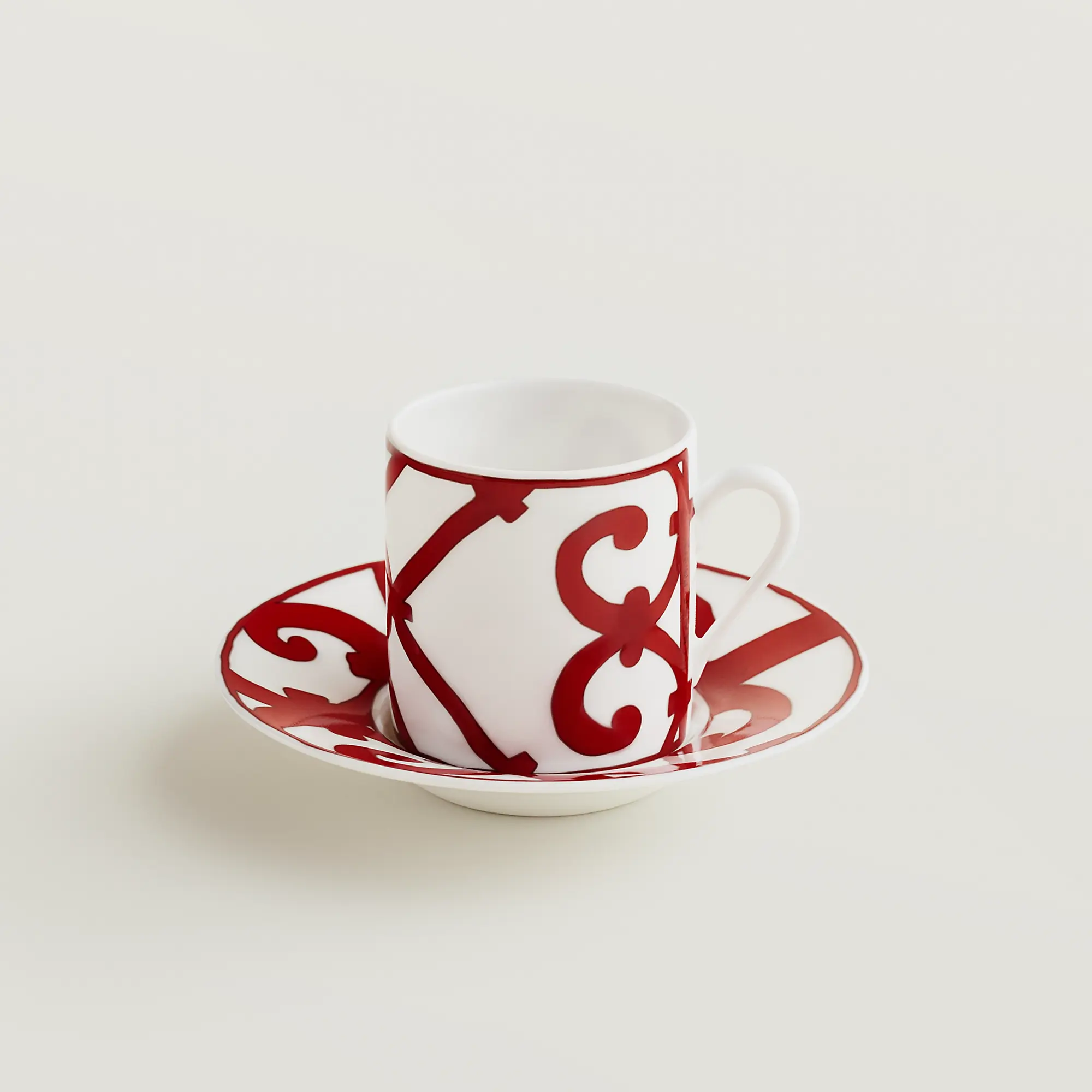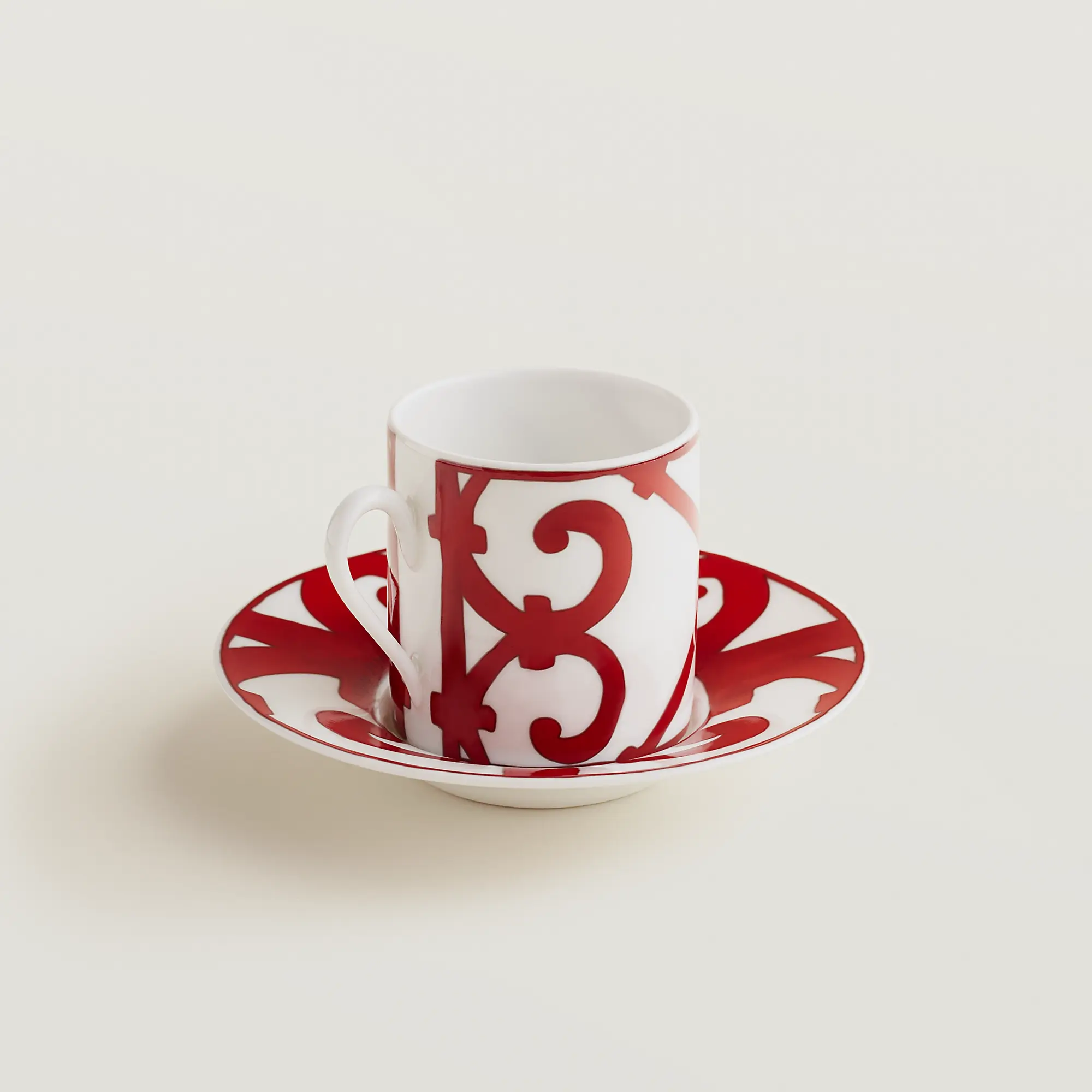Набор из фарфоровых кофейных чашек с блюдцем (2 шт). Рисунки выполнены методом трафаретной печати и нанесены вручную. Этот ярко-красный сервиз, состоящий из 47 предметов, идеально подходит для обеда, ужина, чая/кофе или в качестве декоративных элементов. Он отдает дань уважения смелым дизайнерским решениям андалузской кузницы. Сделано во Франции. Художник Ариэль де Бришамбо.
