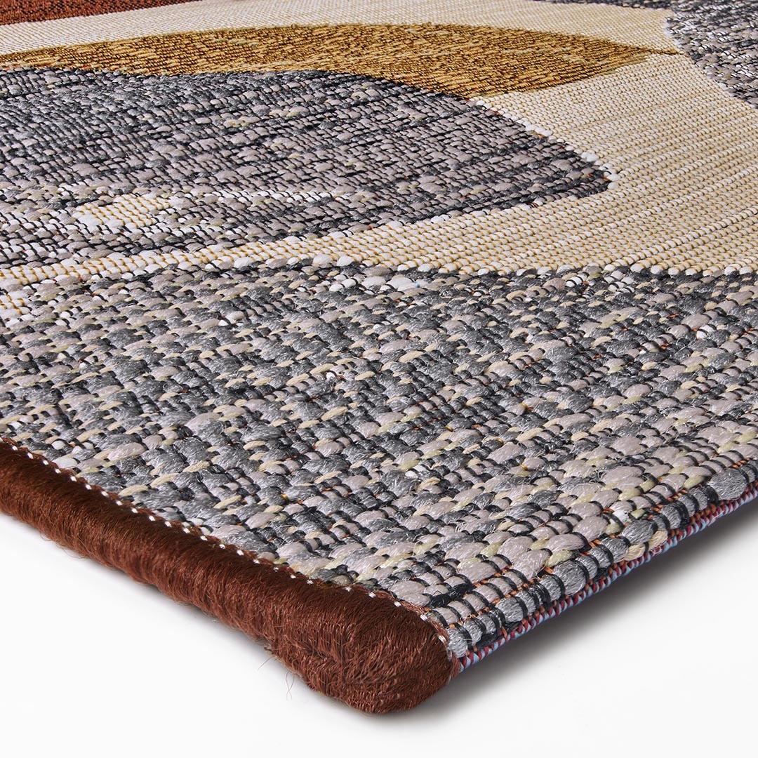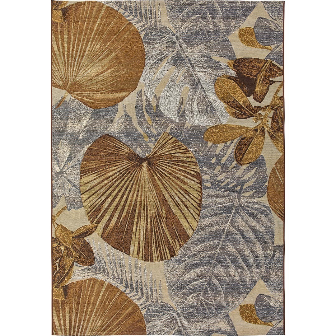 Ковёр Amazzonia 355X отличается потрясающим тропическим дизайном с крупными растительными мотивами в тёплых земляных тонах: золотом, бронзовом и нежно-сером. Этот замысловатый узор на нейтральном фоне создаёт изысканный и современный образ. Как видно на фотографии, машинная обработка гарантирует высокое качество отделки, сочетающее в себе долговечность и стиль, идеально подходит как для использования в помещении, так и на улице. Этот ковёр, устойчивый к погодным условиям, идеально подходит для использования на открытом воздухе, сохраняя яркие цвета и структуру с течением времени. Плоская конструкция и высококачественные материалы устойчивы к пятнам и грязи, что обеспечивает простоту чистки и ухода.