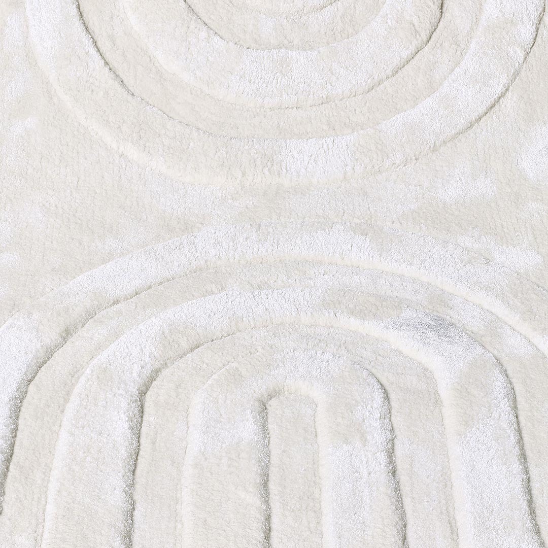Ковер SOLEIL PORCELLANA отличается изысканным монохромным дизайном с красивым рельефным геометрическим узором. Мягкие оттенки слоновой кости и концентрические дуговые мотивы создают ощущение глубины и объема, добавляя нотку сдержанной роскоши любому помещению. Гармоничная симметрия и минималистичная эстетика делают этот ковер идеальным выбором для современных интерьеров, особенно для тех, кто ищет ковры из Великобритании, сочетающие современный дизайн с итальянским мастерством. Этот ковер, выполненный вручную, демонстрирует высочайшую художественную точность, гарантируя исключительное качество и долговечность. Ковер SOLEIL PORCELLANA, изготовленный из 100% вискозы, обладает шелковистой текстурой и обеспечивает непревзойденный комфорт.