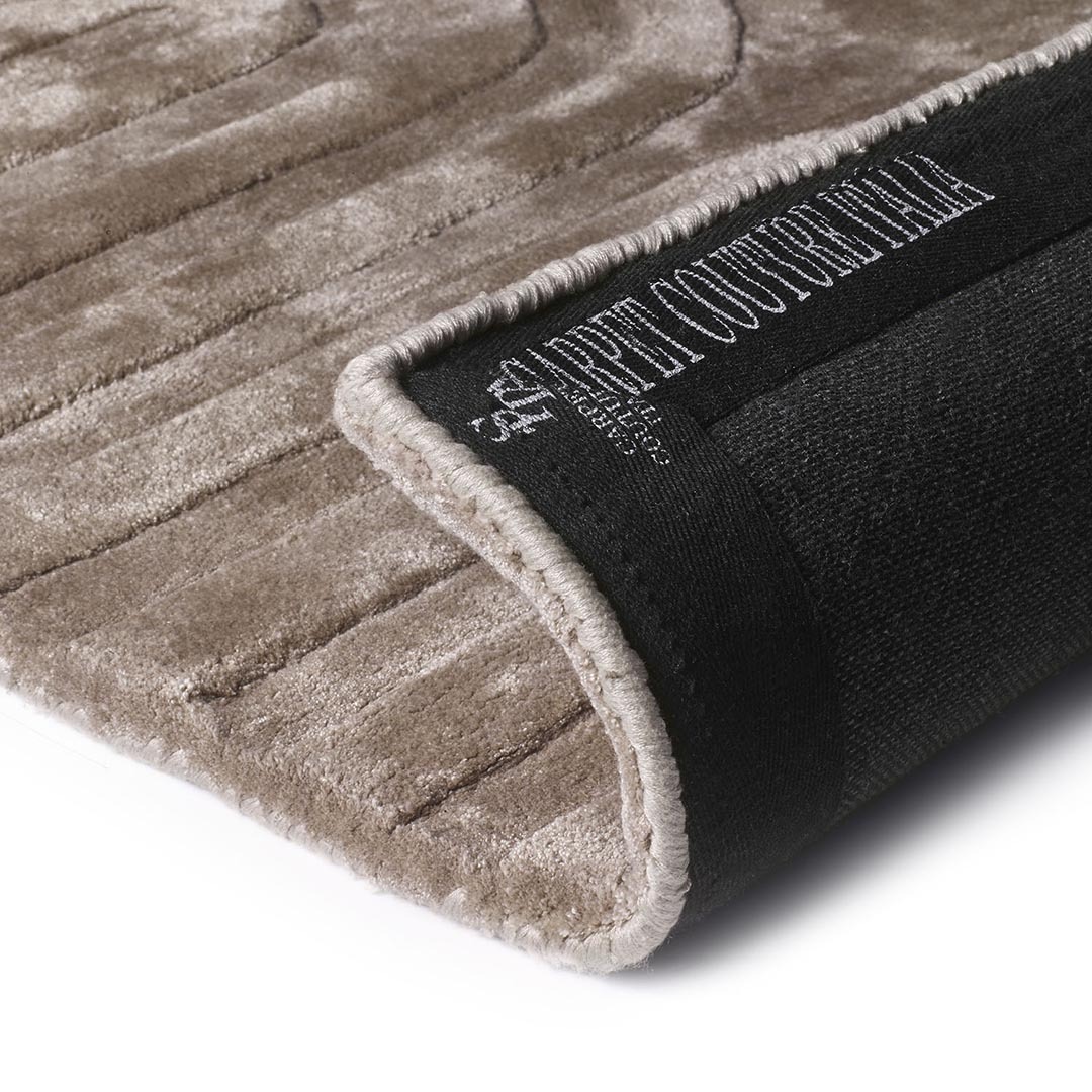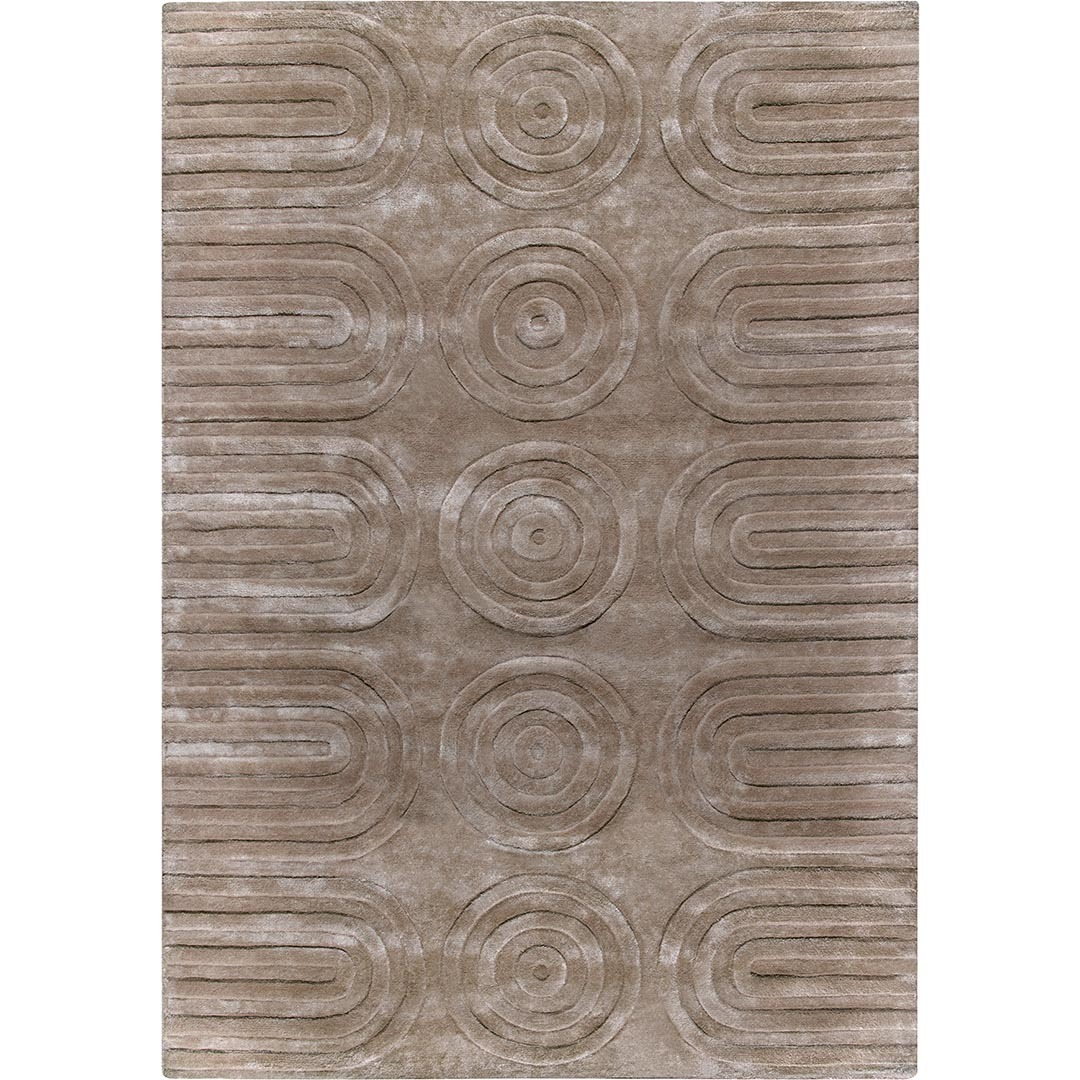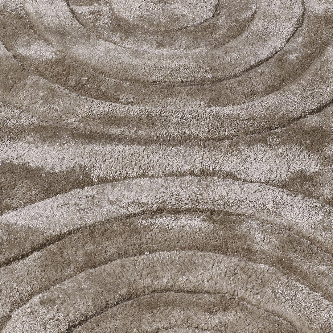 Ковер SOLEIL VISONE отличается изысканным геометрическим узором насыщенного бархатистого серо-коричневого оттенка. Вырезанные вручную рельефные концентрические узоры создают потрясающий трехмерный эффект, добавляя глубину и индивидуальность любому помещению. Легкий блеск вискозных волокон подчеркивает его роскошную привлекательность, делая его идеальным дополнением к современному интерьеру. Ковер SOLEIL VISONE, изготовленный из 100% вискозы, обеспечивает непревзойденную мягкость и роскошные ощущения: Шелковистость и мягкость под ногами – вискозные волокна создают роскошную гладкую текстуру, обеспечивая комфорт при каждом шаге. Элегантное отражение света – естественный блеск вискозы добавляет лёгкое свечение, подчёркивая трёхмерный рисунок. Прочность и эластичность – долговечная вискоза дарит красоту, сохраняя при этом свою богатую текстуру.