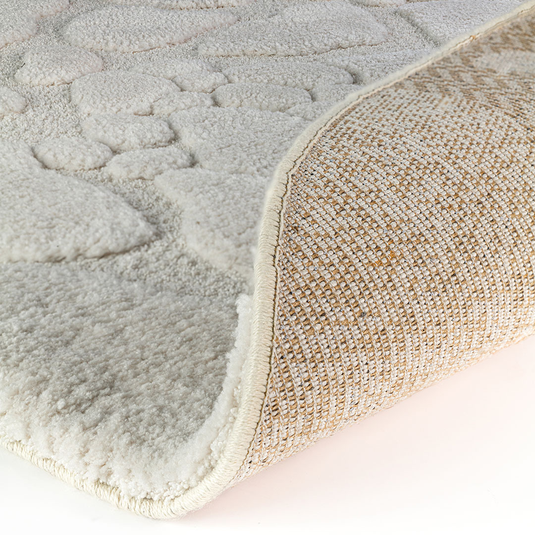 Ковер VENERE STONE NEVE с элегантным абстрактным узором в виде гальки в нежном оттенке слоновой кости представляет собой гармоничное сочетание современного искусства и домашнего уюта. Его уникальная овальная форма, высокий ворс и структурированная текстура создают выразительный визуальный эффект, превращая этот ковер в настоящий акцент вашего интерьера. Изготовленный на станке, он отличается точностью и долговечностью, идеально дополняя современные жилые помещения. Ковер, изготовленный на 55% из переработанного полиэстера и на 45% из полиэстера, отличается экологичным составом, обеспечивая мягкость, прочность и долговечность. Использование переработанных волокон подчеркивает приверженность экологичному образу жизни и делает его идеальным выбором для тех, кто ценит красоту и ответственность.
