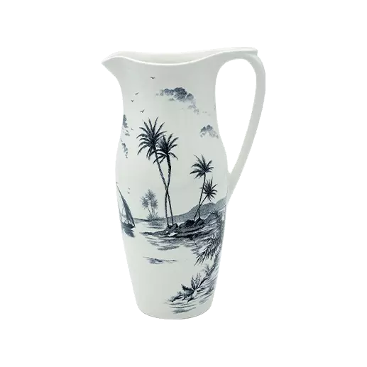 Узор Vues d'Orient представлен в совершенно новом виде: кувшин. Идеально подходящий в качестве центрального элемента сервировки стола или в качестве красивой вазы, синий кувшин Les Dépareillées — это элегантный и современный декоративный предмет. Также доступен в зеленой коллекции Les Dépareillées.