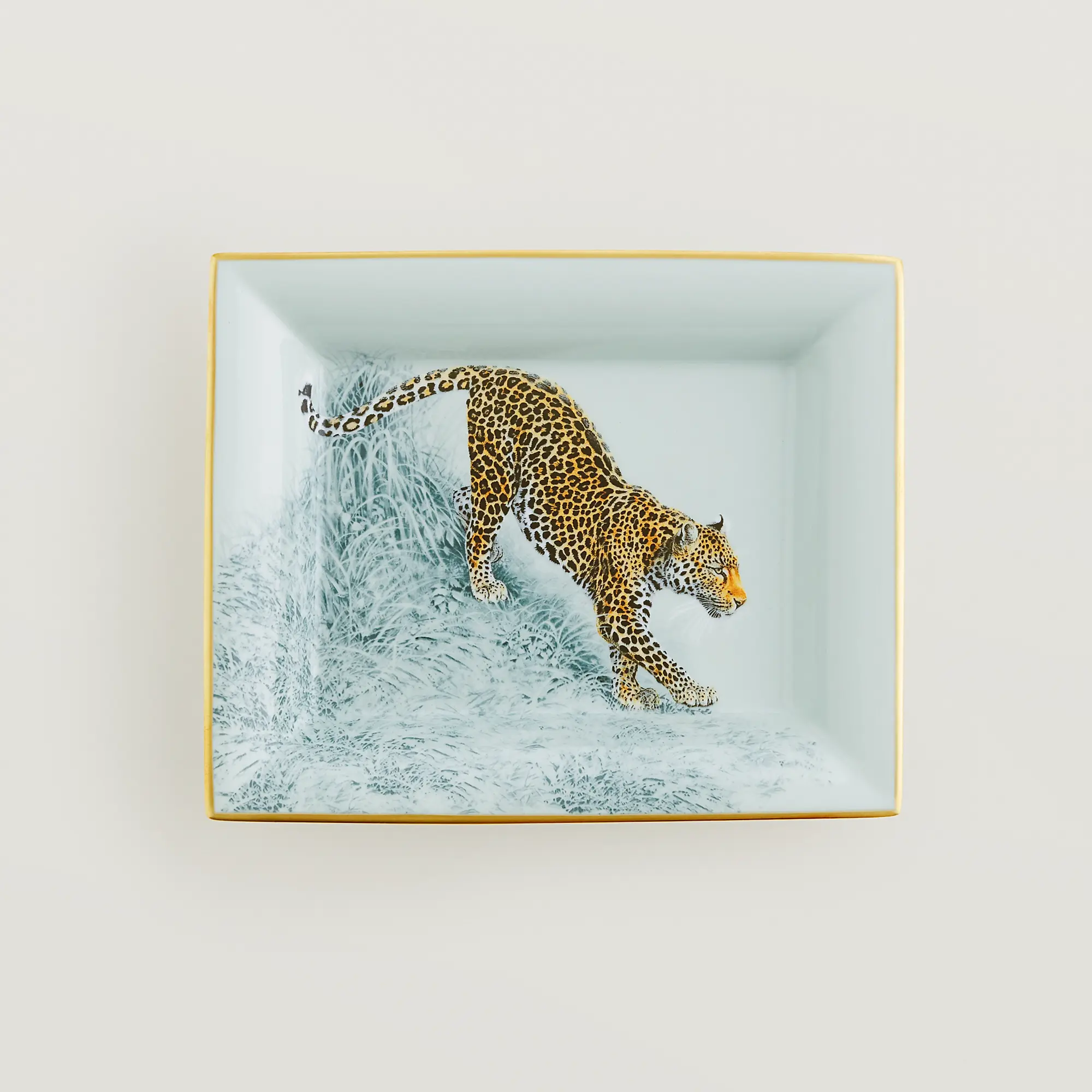 Фарфоровая мелочница с рисунком «Пантера». Рисунки выполнены методом трафаретной печати и нанесены вручную. Золотая кайма обработана вручную. Живая и умиротворяющая природа, воспевающая красоту животных, украшает коллекцию Carnets d'Équateur, созданную художником-натуралистом Робертом Далле. Сделано во Франции.