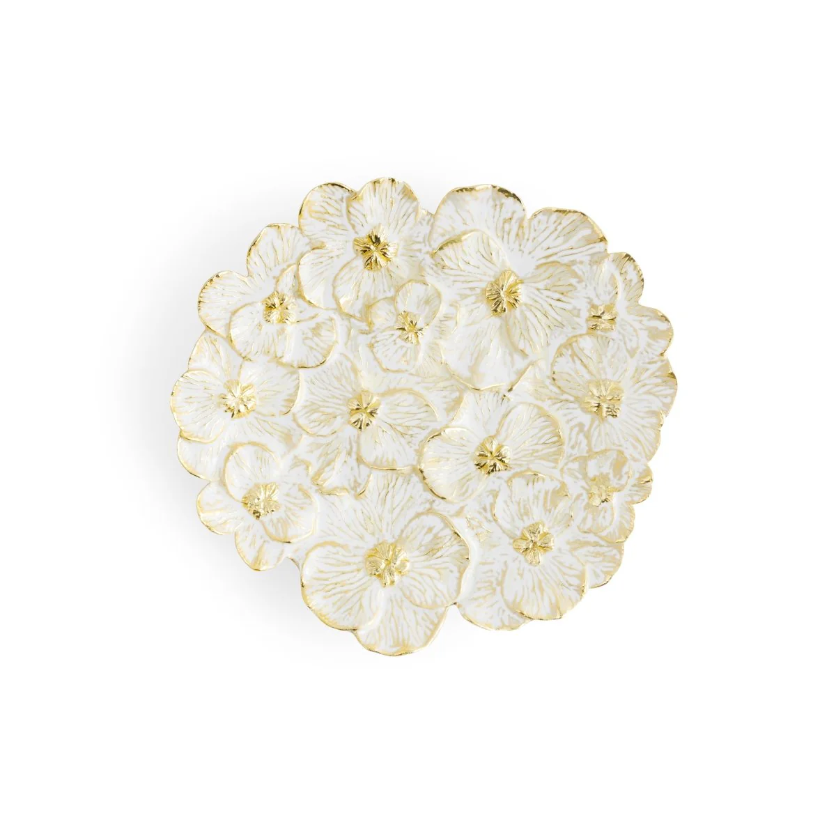 Мелочница Orchid Catch All — это искусно выполненное изделие ручной работы, сочетающее в себе металл золотистого цвета и нежные белые эмалированные орхидеи, передающие неземную красоту этих растений. Созданная для хранения необходимых вещей с изысканной роскошью, эта элегантная вещь сочетает в себе художественное оформление и функциональность, что делает ее вневременным дополнением к любому интерьеру.