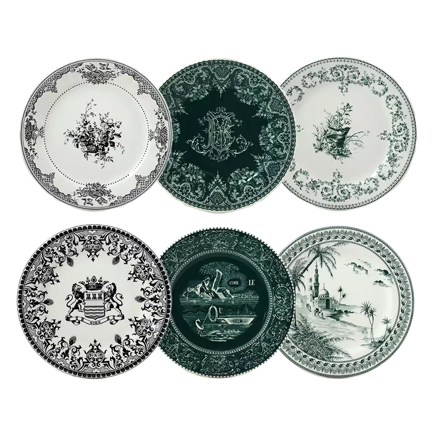 Создавайте неожиданные сочетания для стола, который будет выглядеть неповторимо, с помощью этих 6 разных тарелок! Набор Dépareillées Green состоит из 6 зелено-черных дизайнов из архива Gien: