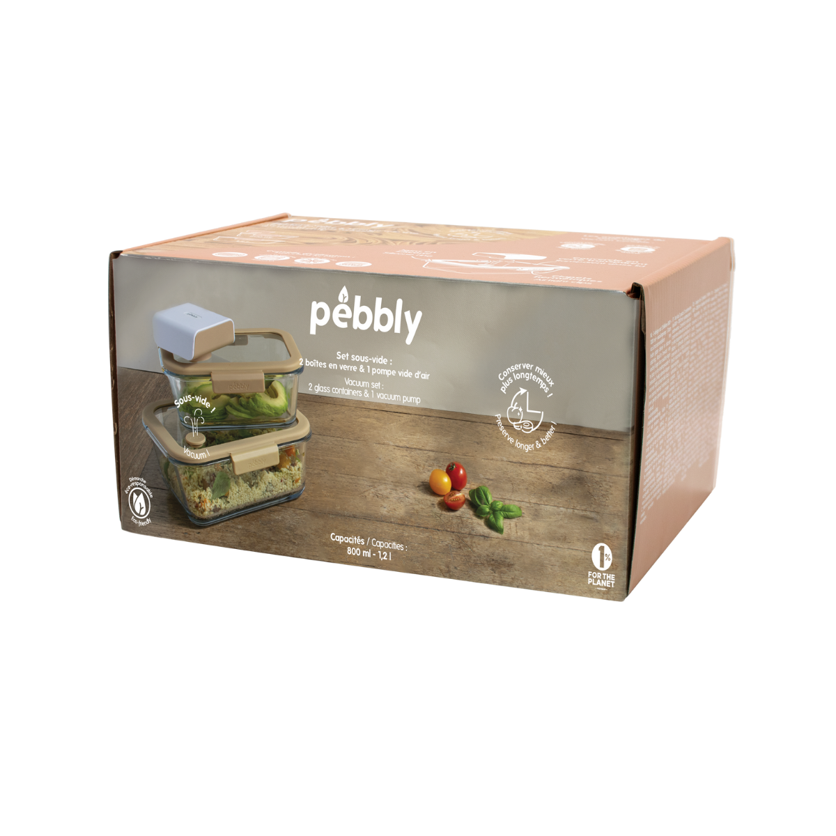 Откройте для себя революцию вакуумной упаковки с! Вакуумная упаковка лучше сохраняет текстуру, вкус, цвет и питательные вещества продуктов, чем другие методы хранения, поскольку уменьшает окисление и предотвращает потерю влаги. Продлевая срок годности продуктов, вакуумная упаковка помогает сократить пищевые отходы, предотвращая порчу продуктов до их употребления. В набор входят: Прямоугольная стеклянная банка с вакуумным клапаном — 800 мл (18,1 x 13,8 x 7,7 см). Прямоугольная стеклянная банка с вакуумным клапаном — 1200 мл (20,4 x 16,3 x 8,5 см). Вакуумный насос с зарядным кабелем USB-C.