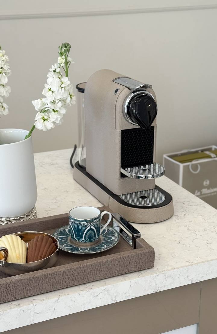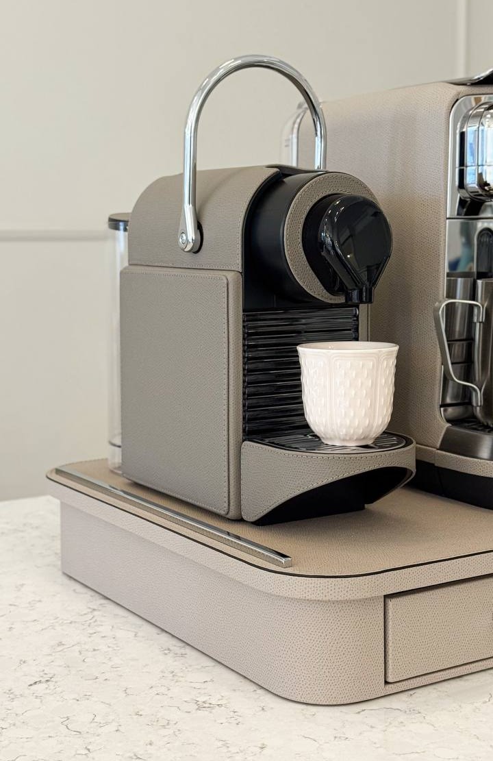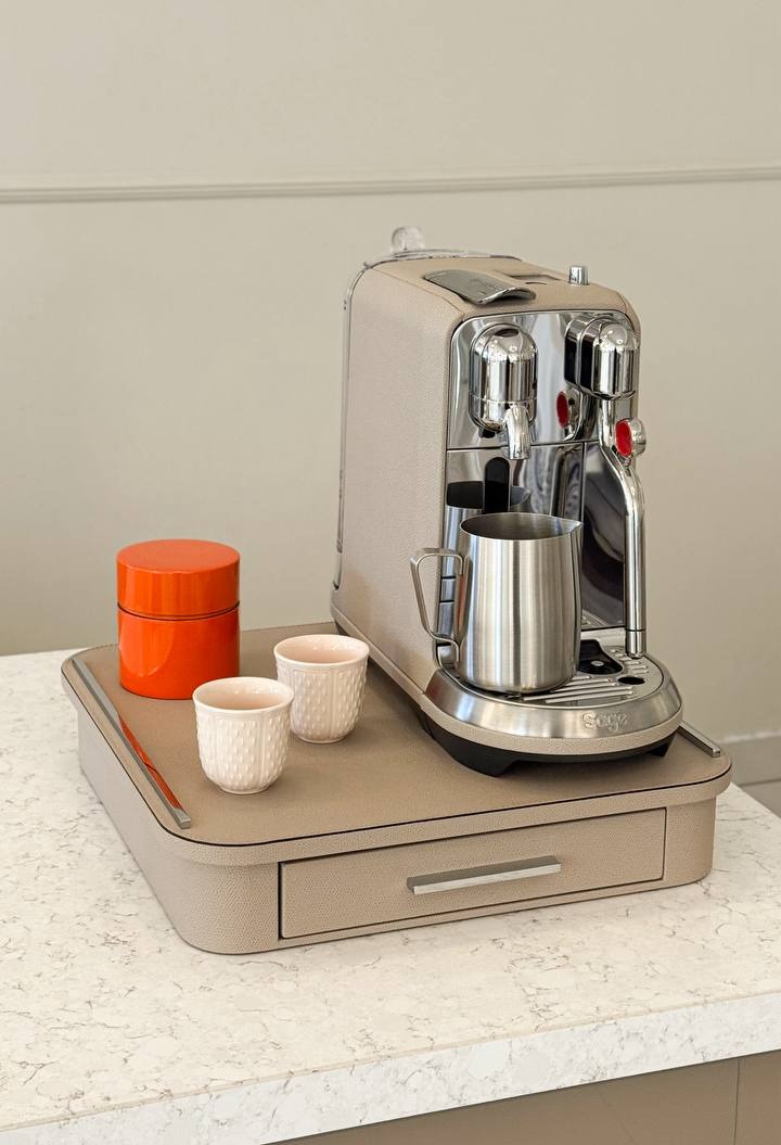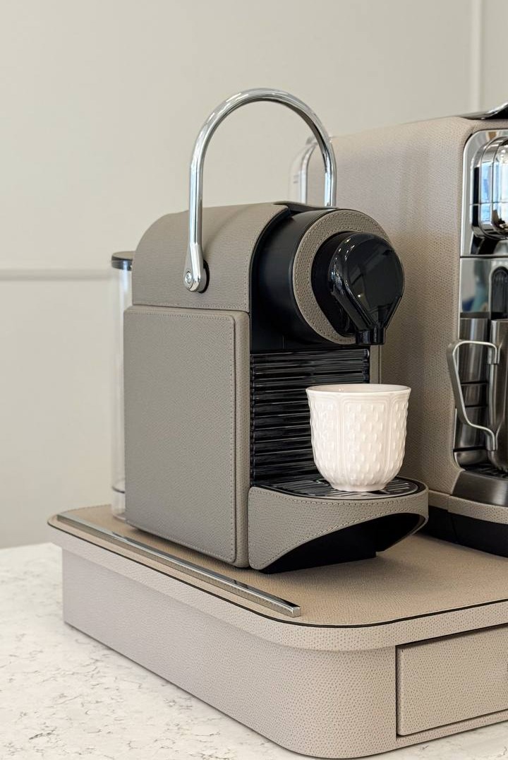 Органайзер для кофейных капсул Saint-Germain от Pigment France, выпускаемый Giobagnara, предлагает изысканное решение для организации ваших кофейных принадлежностей. Обтянутая кожей деревянная конструкция и роскошные металлические вставки сочетают в себе функциональность и элегантность, делая его идеальным аксессуаром для любого кофейного уголка.