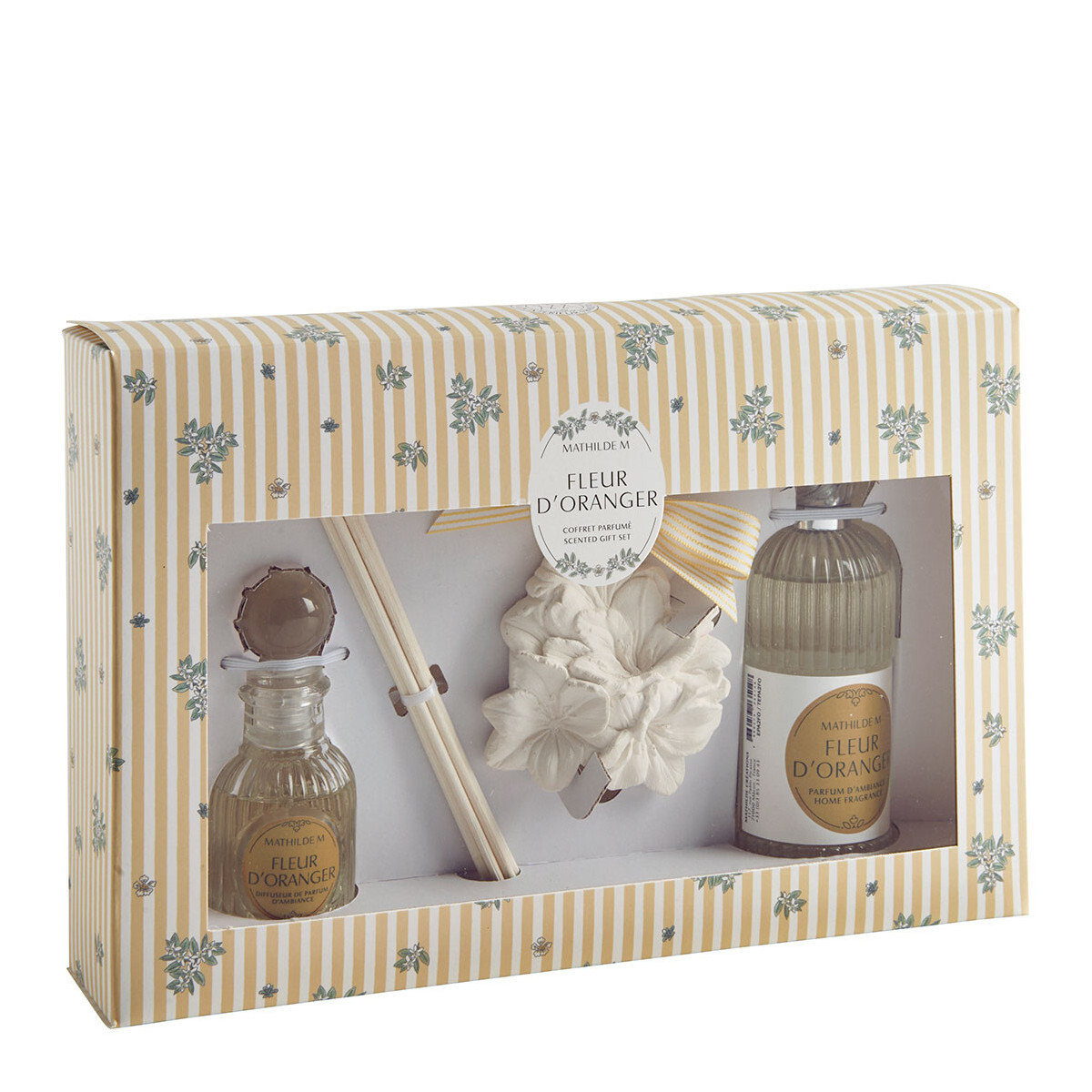 Поддайтесь аромату Fleur d'Oranger — солнечному цветочному аромату с регрессивными нотами цветов апельсина, смешанными с теплыми акцентами кедра и амбры. Ода вечной красоте самого культового белого цветка. Этот подарочный набор включает в себя диффузор для дома (30 мл), спрей для помещений (100 мл) и красивое гипсовое украшение ручной работы. Гипсовые украшения Mathilde M, символ бренда, обладают тонким ароматом и изготовлены вручную в мастерских бренда скульптором-орнаменталистом с использованием ремесленных методов. Прекрасная идея для подарка, которую можно подарить или просто побаловать себя!