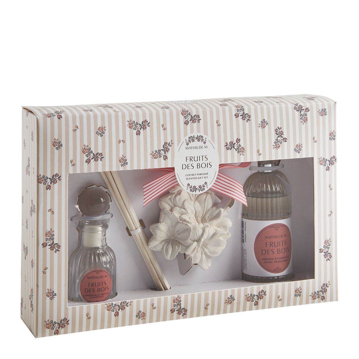 Поддайтесь Fruits des Bois — захватывающему аромату с цветочно-фруктовым силуэтом, который раскрывается свежими нотами красных фруктов, окутанных бархатом фиалки. В его основе сладкие ноты ванили и пачули завершают пробуждение вкусовых рецепторов и вызывают тягу к клубничному джему. Этот подарочный набор включает в себя диффузор для дома (30 мл), спрей для помещений (100 мл) и красивое гипсовое украшение ручной работы. Гипсовые украшения Mathilde M, символ бренда, обладают тонким ароматом и изготовлены вручную в мастерских бренда скульптором-орнаменталистом с использованием ремесленных методов. Прекрасная идея для подарка, которую можно подарить или просто побаловать себя!