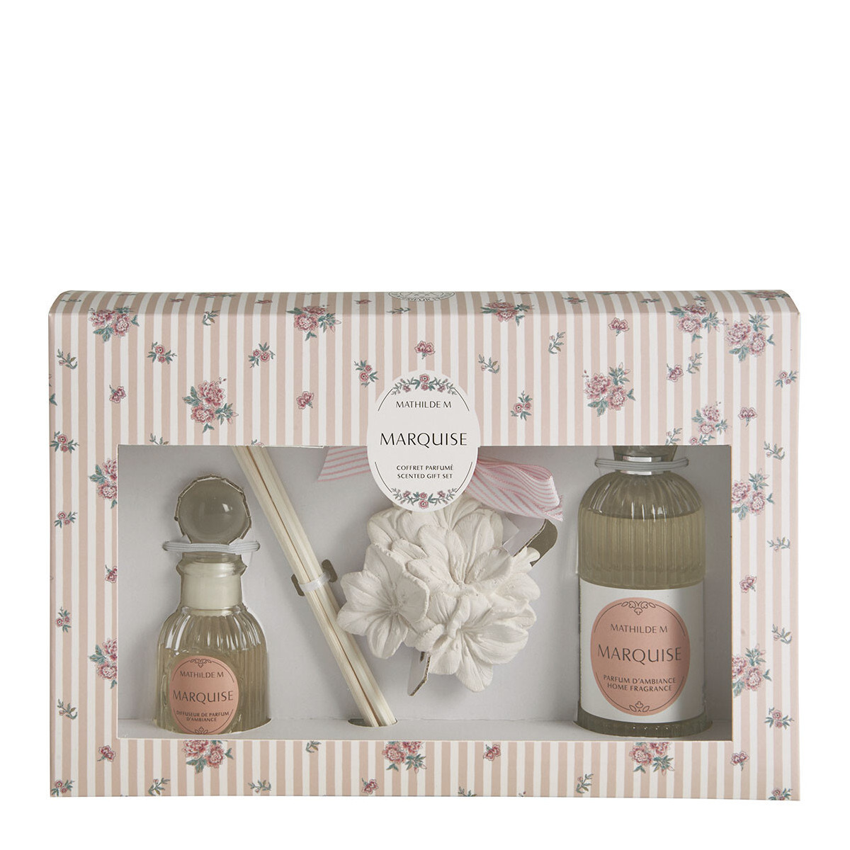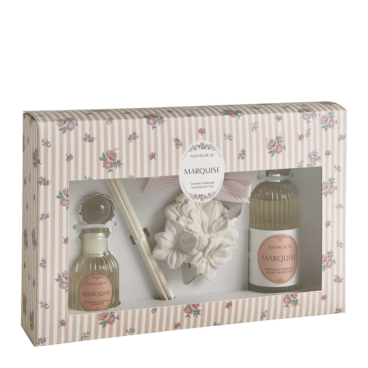 Фирменный аромат Позвольте себе соблазниться Marquise — драгоценным и невероятно чувственным ароматом, сочетающим древесные и пряные ноты со сладостью ванили и мускуса. Откройте для себя новую коллекцию Intemporelles en Fleurs. Наша культовая линия Intemporelles представлена лимитированной серией с нежными весенними цветами. Этот набор включает в себя диффузор для ароматов дома (30 мл), спрей для помещений (100 мл) и изящное резное гипсовое украшение ручной работы. Гипсовые украшения Mathilde M, символ бренда, обладают тонким ароматом и изготовлены вручную в мастерских бренда скульптором-орнаменталистом с использованием ремесленных методов. Прекрасная идея для подарка, которую можно подарить или просто побаловать себя!