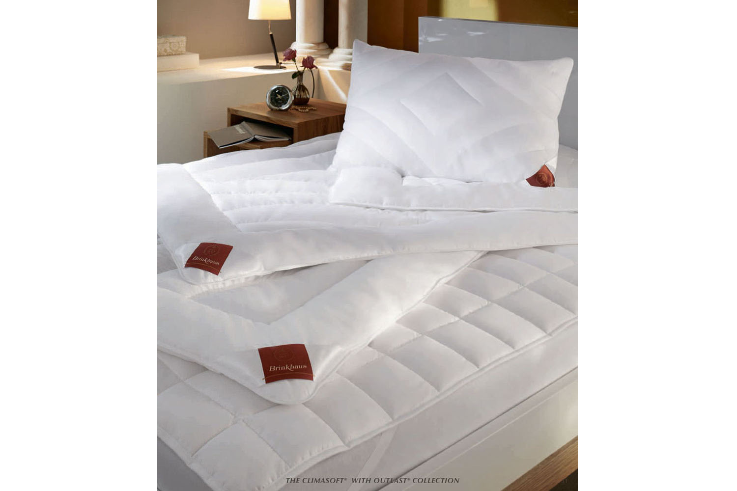 Хлопковый батистовый чехол подушки CLIMASOFT с обеих сторон простёган инновационным высокотехнологичным волокном Outlast®, специально разработанным для космической отрасли. Outlast® способен контролировать и регулировать тепловой баланс - волокно поглощает любое излишнее тепло, сохраняет его и отдает обратно, когда окружающая температура понижается. Второй особенностью подушки CLIMASOFT является то, что её жесткость можно регулировать самостоятельно и тем самым подобрать индивидуальный уровень эластичности и поддержки. Регулируемая часть - это внутреннее ядро подушки, которое находится в отдельном чехле на молнии и наполнено синтетическим волокном Thermofill® Plus, скрученным в шарики. Открыв молнию можно удалить или добавить необходимое количество, отрегулировав степень жёсткости подушки. Рекомендована бережная стирка чехла при температуре до 60оС
