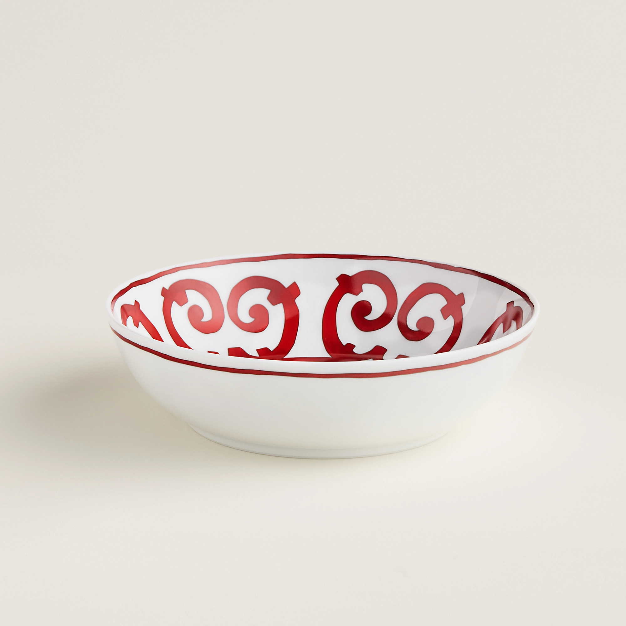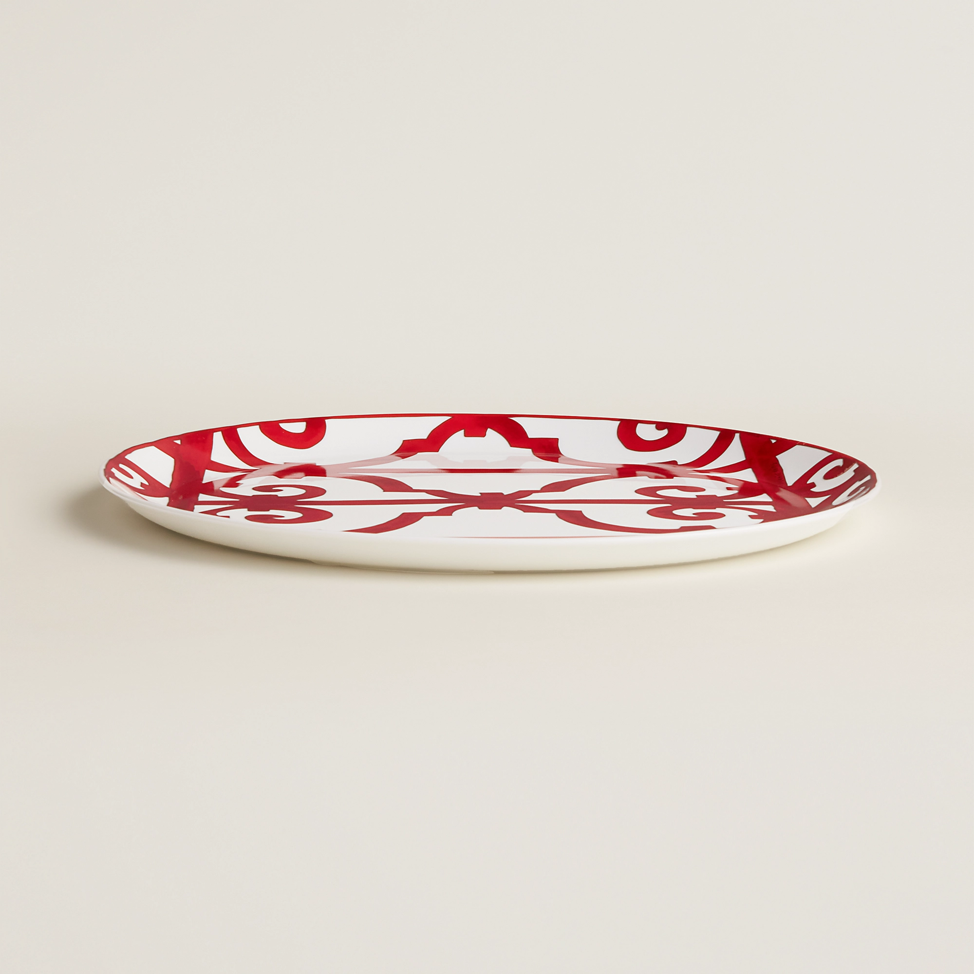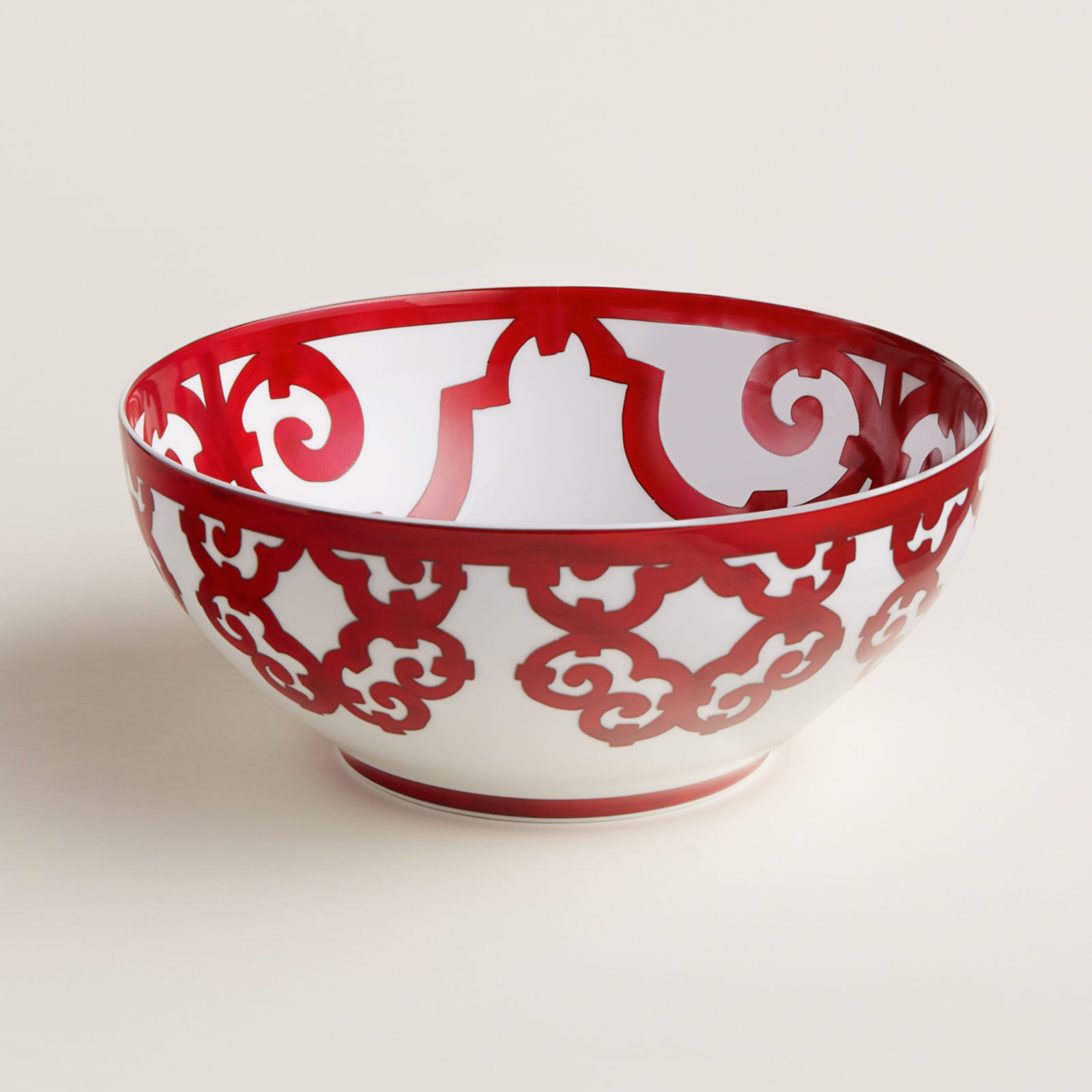 С графическим красным дизайном фарфоровый столовый набор Balcon du Guadalquivir от HERMÈS Paris напоминает старинное испанское ремесло. Декор на тонком белом фарфоре вдохновлен коваными решетками, которые веками формировали облик городов Андалусии. Многочисленные вариации кружевного дизайна позволяют каждый раз создавать уникальную сервировку стола.