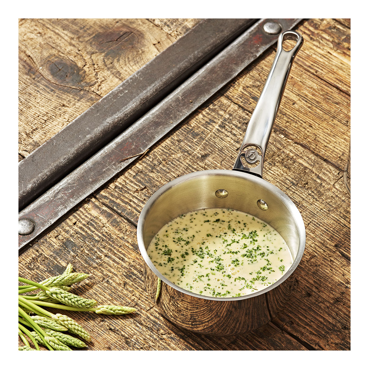 Толстое многослойное дно (7 мм): подходит для индукционных плит и обеспечивает равномерное распределение тепла по дну кастрюли. Ручка из нержавеющей стали с заклепками: разработана для оптимальной эргономики; выемки под ручкой для пальцев; изогнутая ручка для большого пальца. Высококачественная зеркальная полировка.