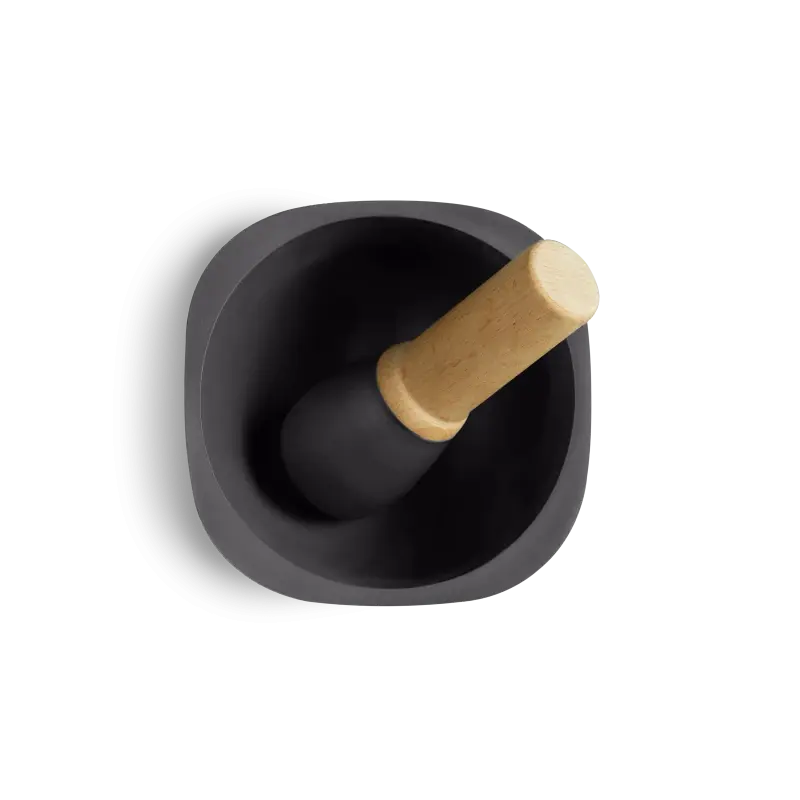 Созданы для того, чтобы извлекать из сырья все тонкости текстур и вкусов. Наша новая ступка тяжёлая и невероятно устойчивая, она гарантирует отличную устойчивость при измельчении без необходимости держать её крепко. Эргономичный пестик обеспечивает уверенное измельчение, дробление и крошение. Внутренняя поверхность ступки и кончик пестика слегка шероховатые, чтобы легко захватывать продукты и раздавливать их о стенки.