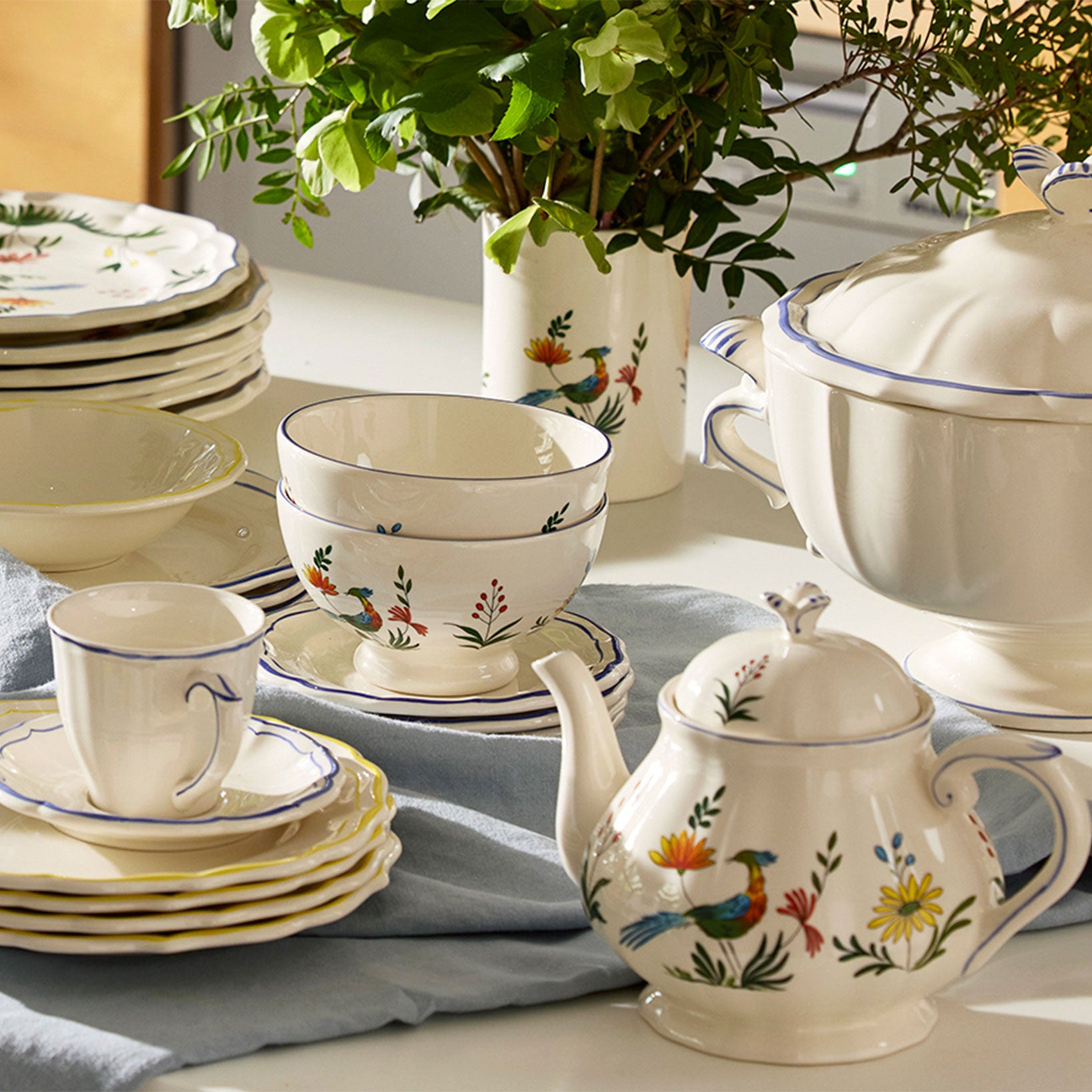 Создайте элегантную сервировку стола, сочетая десертные тарелки Birds of Paradise с предметами из коллекции Filet Bleu. Получайте удовольствие, комбинируя предметы из разных коллекций, и порадуйте своих гостей на следующей вечеринке.