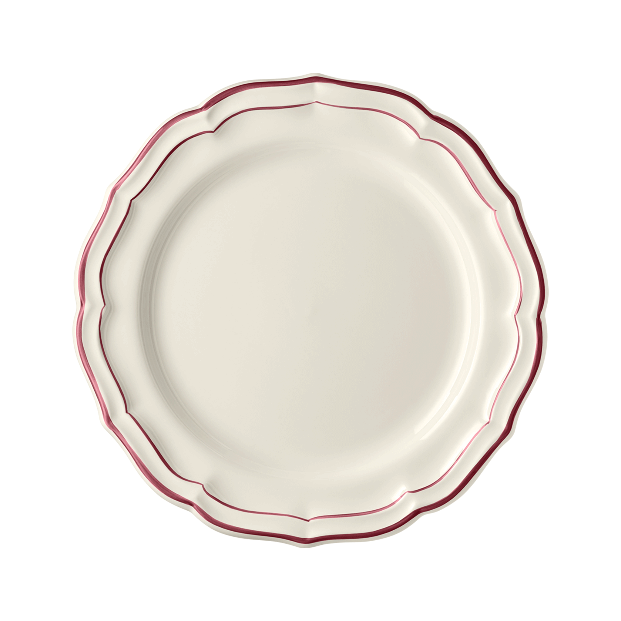 Эти обеденные тарелки идеально подойдут как для неформальных встреч, так и для повседневных обедов, украсят ваш стол и будут элегантно сопровождать вас на протяжении всего кулинарного процесса. Благодаря изящным краям, нанесенным вручную, обеденные тарелки Filet Burgundy прекрасно дополнят многие коллекции Gien.