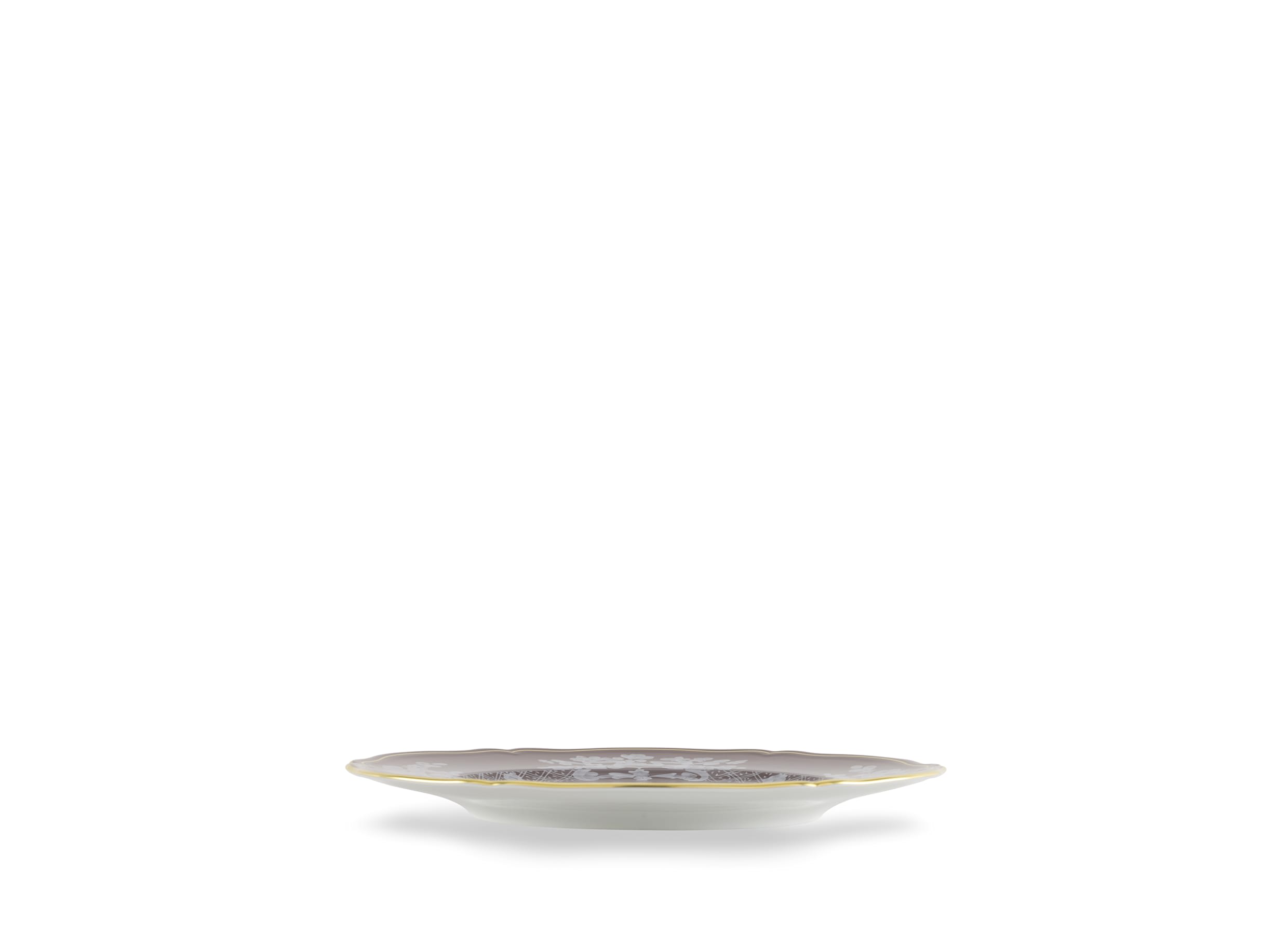 Фарфоровая сервировочная тарелка с декором Castagna и золотой нитью. Коллекция Oriente Italiano. Элегантность и декоративная универсальность сочетаются в фарфоровой сервировочной тарелке коричневого оттенка Castagna, идеально подходящей для создания атмосферы тепла и уюта на столе.