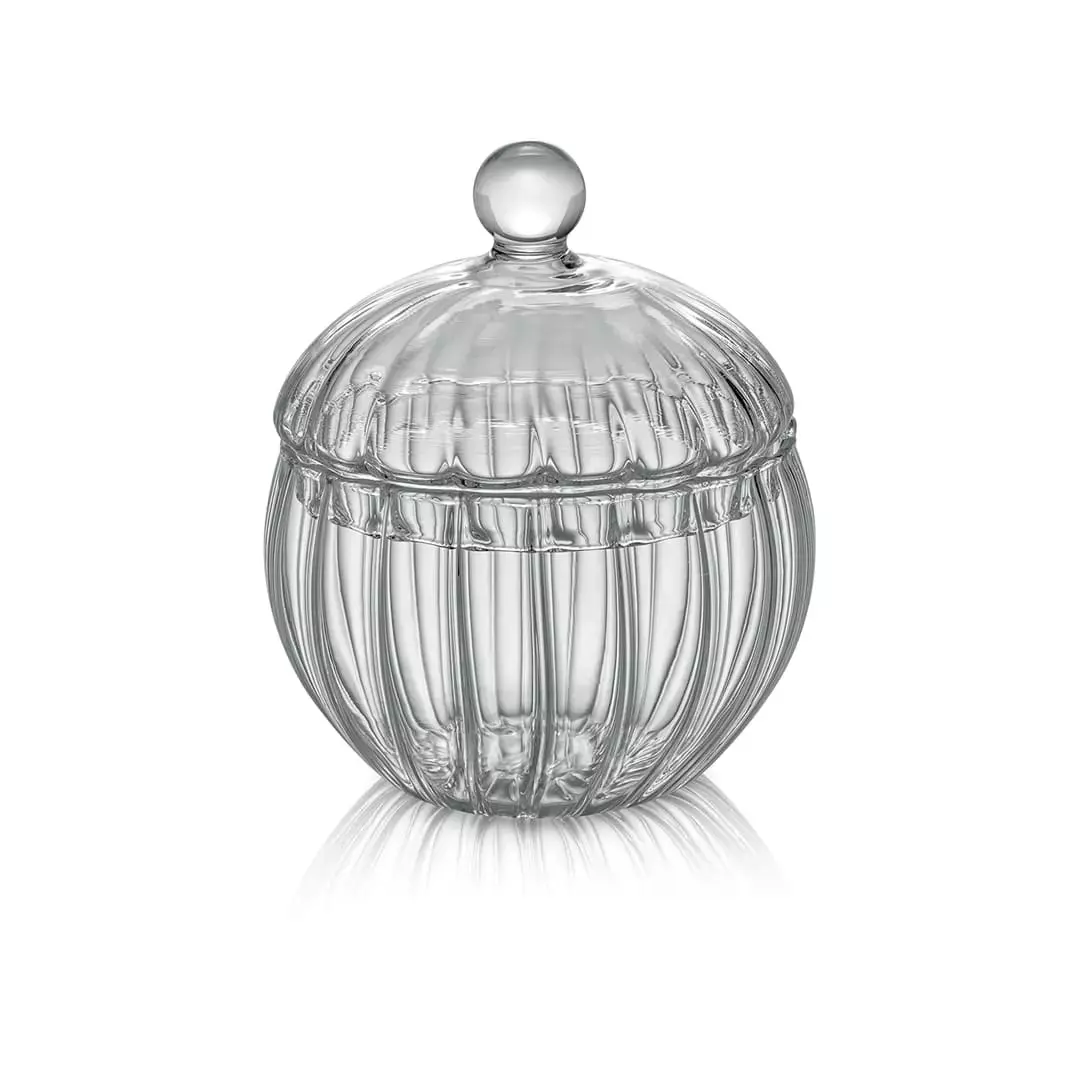 Подставка из боросиликатного стекла с крышкой. Идеально подходит для подачи на стол небольших пирожных, шоколада, печенья и т. д.